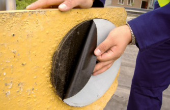Bitumen: the rubber slab carriers under the BiboBlocks® have bituminous adhesive pads. To install the slabs the roof surface first have to be heated with a small blowtorch or a hair dryer.