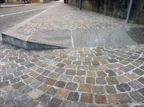The plinths are almost always laid in pairs at the ends of the driveway entrance to connect the access thresholds to the curbs of the sidewalks.