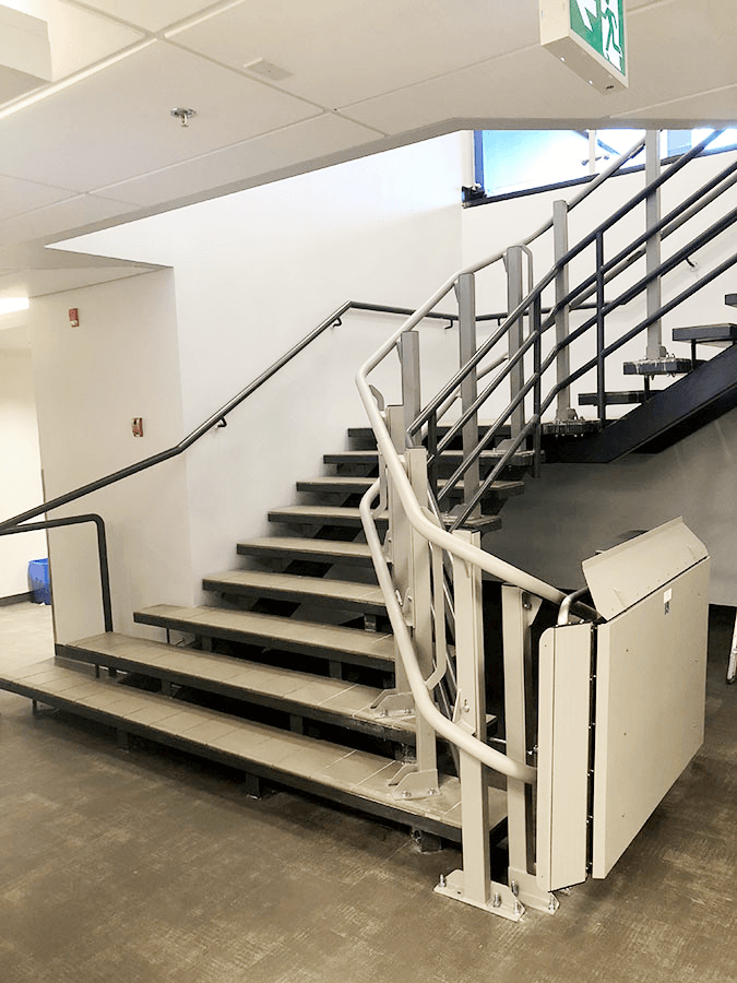 Garaventa inclined platform lifts are ADA approved as a means to provide public accessibility. The ADA Accessibility Guidelines (ADAAG) recognize that inclined platform lifts provide a valuable access solution. They can be used as part of an accessible path of travel to enter and travel within a building. They are most often used in existing buildings or to access special use areas, such as stages, projection rooms, press boxes, bleachers and metro trains station platforms. Use of inclined platform lifts in new construction is restricted in some jurisdictions. Contact your local Garaventa Lift authorized representative for more information.