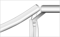 Handrail poles on the platform are connected with brackets allowing a max. horizontal opening of 100 mm. Max. 100 mm opening between steps.