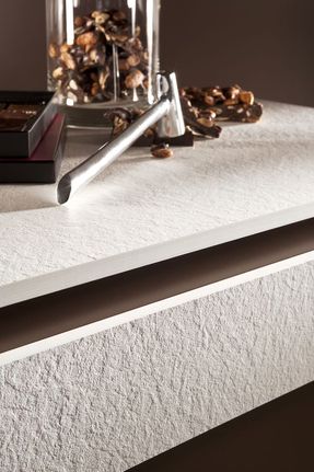 The aesthetic quality of Monochrom brings out the magic of the material and the way it feels. This makes it perfect for prestigious projects, designer spaces and furniture, reception areas, and more for graphic effects and pure lines.