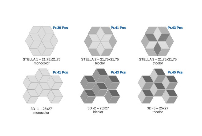 - Big Rhombus 23 x 40- Medium Rhombus 11,5 x 20- Small Rhombus 5,75 x 20