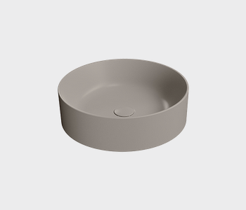 Round countertop washbasin diameter 45cm without overflow hole. Made with special extraglaze® antibacterial enamel, the kube x ø45 countertop washbasin is also available in gsi color elements finishes, and can be fitted with a drain with chrome or ceramic finish.