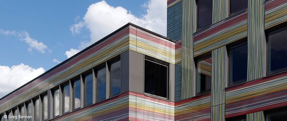 The continuous production process allows the fabrication of unusually large facade elements with a flat surface.