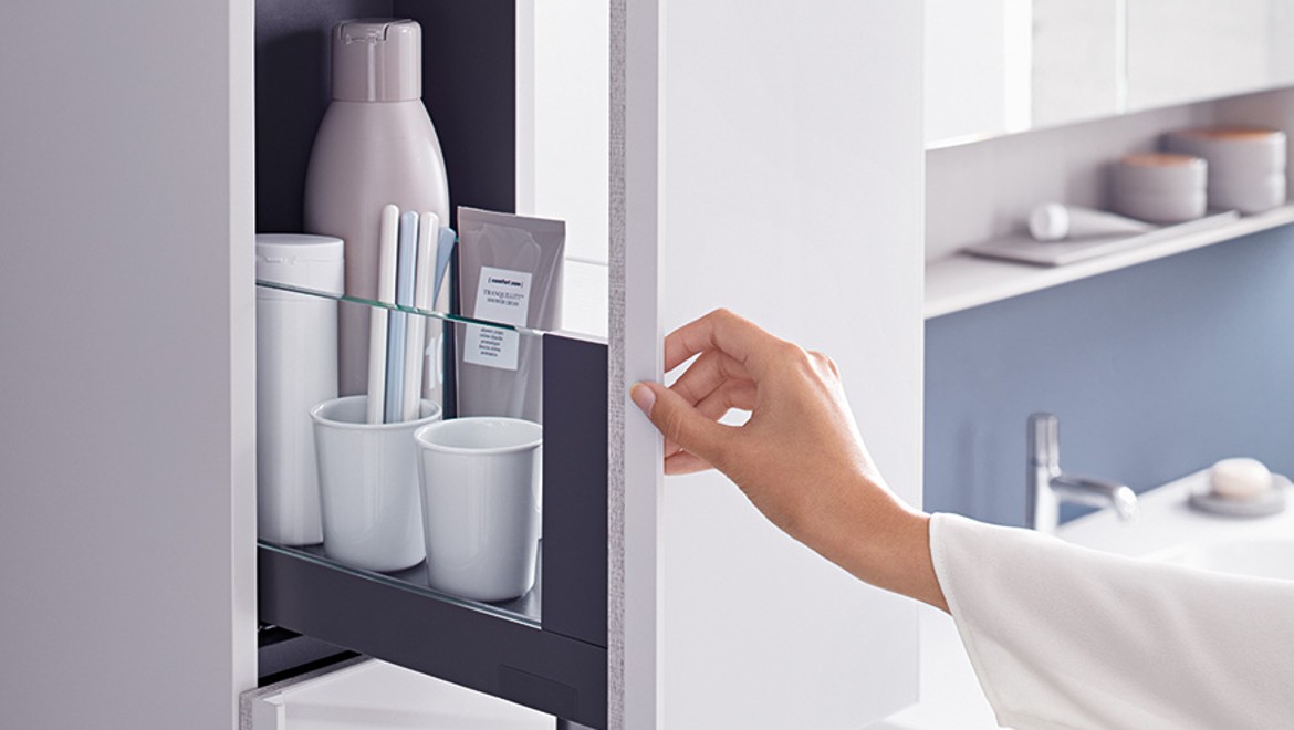 Following extensive tests with consumers, the Geberit Acanto series has been developed to meet the widest variety of everyday needs. The inside of the furniture is surprisingly flexible, with the arrangement of the drawers, compartments and shelves creating an uncluttered environment.