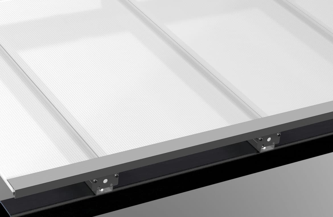 Due to the panel’s special cell structure it offers the highest resistance to impact.Extruded with standing seams, the panel’s double tooth grip-lock connection ensures longevity in resistance to high winds, snow loads and hail damage.