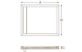 - GF 150x80: (A) 150 cm / 60” inc. (B) 80 cm / 32” inc. (C) 7.5 cm / 3” inc