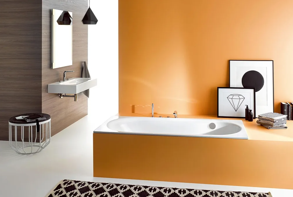 The BetteComodo, 1900 × 900 × 450 mm, article no. 1252, is not available with BetteUpstand or in special size. For professional installation we recommend the use of the original bath feet B23-1500. If the bath is to be fitted under a panel, please contact us for individual cut-out details. Available with matching washbasin BetteComodo.