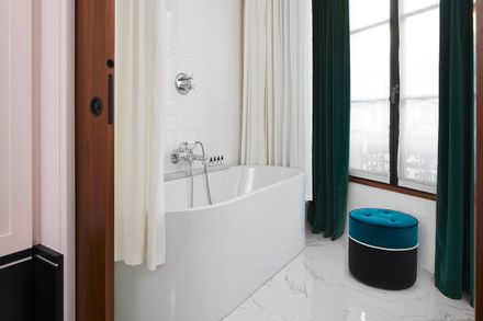 -Enamelled waste cover and overflow knob integrated into the bathtub design (also available with filling function)