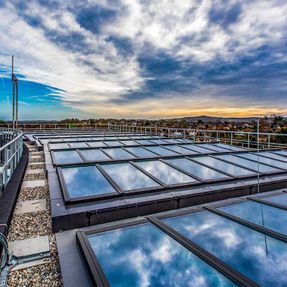 VELUX Commercial’s glass roof systems combine form and function, creating skylights that spread natural light throughout commercial buildings.