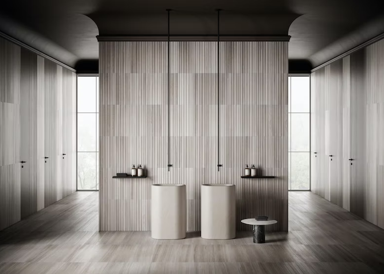 Available in Bianco Carrara, Crema d’Orcia, Gris du Marais® and Pietra d’Avola, it bears the inimitable touch of its designer Elisa Ossino who created the entire Balnea collection round the sculptural quality of natural stone.