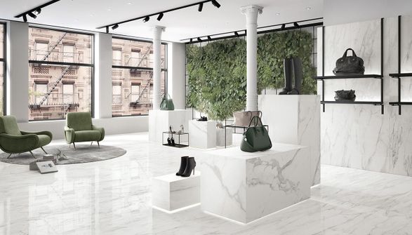 3 different types of marble, for decorating elegant, refined interiors. Statuario, the artists' choice for the creation of classical statues, is now considered one of the finest types of marble because its vein patterning is subtle and very elegant. Calacatta, perhaps the most widely used marble nowadays, has a very attractive, tasteful vein pattern, while Arabescato has more emphatic veining, with a sinuous, decorative line. Bianco D'Italia marble is well suited to aristocratic contexts such as luxury buildings and historic homes, as a part of refined design schemes.