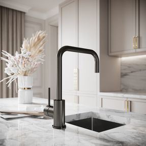 The Flow Single Lever Kitchen Mixer Tap offers a modern appeal suitably fitting to contemporary interiors. The beautiful kitchen tap boasts a distinctive square spout and an urban gunmetal finish.