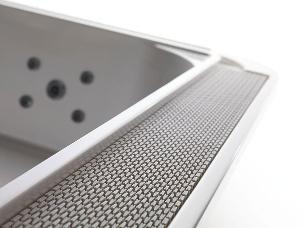 A unique experience. It’s like magic: as you let yourself enjoy the comforting embrace of water, your mind and body get regenerated. In this spa the water constantly flows over the rim of the pool, it overflows into the overflow channels and is conveyed to the balance tank. OF Spa 250/225. A comfortable lounge area and 5 seats characterize this overflow spa, ideal for professional use, for wellness centers and hotels