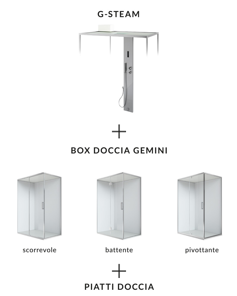 G-Steam is the ideal product for people wanting to create a hammam in their bathroom without any building works. The G-Steam+Gemini program combines design, technology and functionality in a single product.