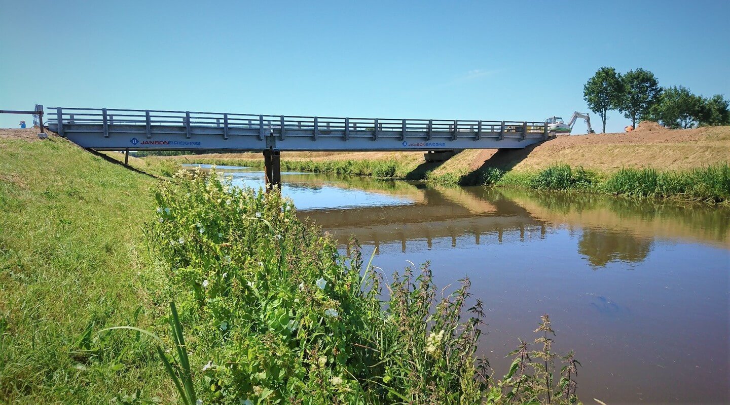 The bridge sections are transported to the construction site as one piece as possible and subsequently installed and assembled into a complete bridge in minimal building time.