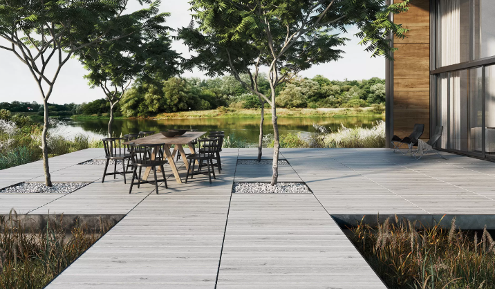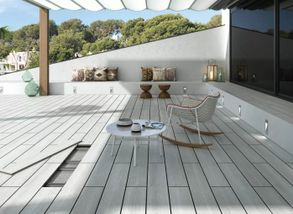 All the technical and aesthetic properties of EXADECK porcelain tile decking mean it can be used in any outdoor space while guaranteeing durability, an unchanging appearance and material strength. This deck floor tile is an extruded tile with strong anti-slip properties (R11) and excellent stain resistance, factors that make this a safe outdoor product that is easy to clean.