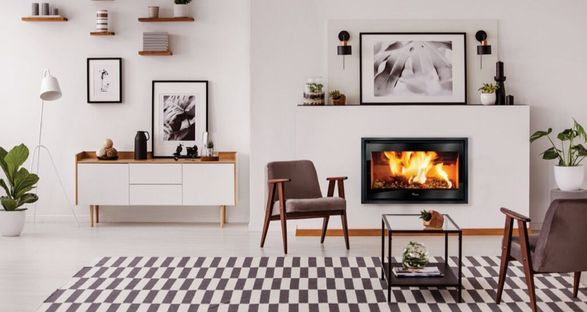 New Lacunza wood insert “Adour 600” with 6.5kW nominal power. Higher view of the fire, lowered fire surface and possibility of having the version with or without fan.