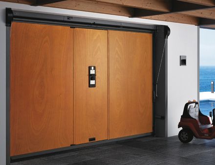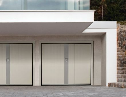 A non-protruding mechanism is also available on request. With this, the door entirely slides effortlessly into the garage interior. Situations where no protrusion is important include arched openings or locations where the garage faces directly onto a public space (streets or pavements).