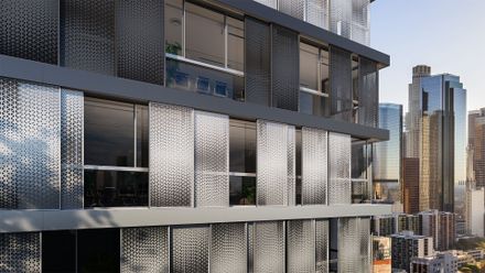 The system has been designed to allow for seamless integration with the building external cladding. Several versions are available to be used with fiber cement, HPL, Aluminium composite panels, wood, glass, ceramic and metal sheets. Provision has been taken to allow the use of cladding material on the shading system itself. In addition to the cladding material, the system comes with a variety of blades to be installed vertically or horizontally.