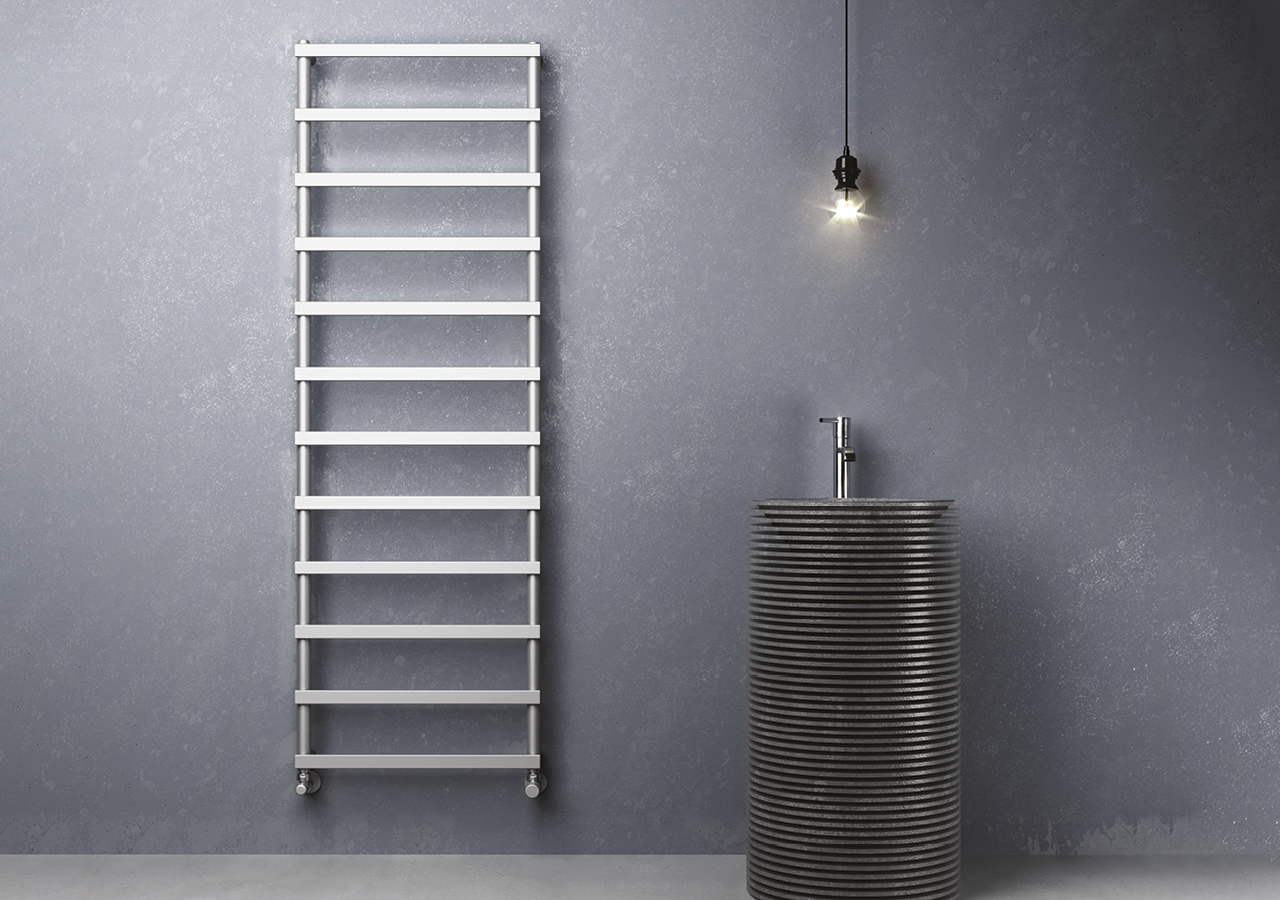 -Vertical collectors in polished/satin stainless steel ø 30 mm. -Horizontal elements in polished/satin stainless steel 30x10 mm.