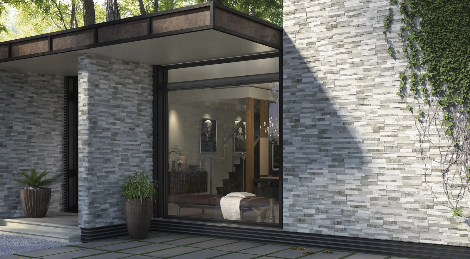 3D stone effect porcelain stoneware