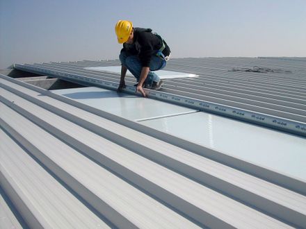 Alutech dach is a composite roofing panel composed of two metal sheet coverings connected by an insulating polyurethane layer . Panels can be installed on any type of bearing structure and in particular on metal structures. Superior sheet corrugation enhances load performances of alutech dach panels , which can be applied on big support dimensions.