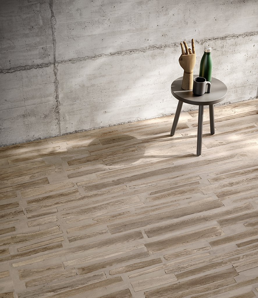 The beauty of time expressed in wood and the elegance of concrete, together for a unique and lively texture that gives natural shades and colours in perfect balance.
