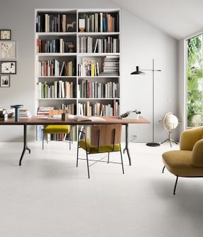 The inspiration starts from the manually applied resin flooring, to evolve into a sophisticated and complex project in top quality porcelain, where the solid colours are accompanied by decorative modules that extend the field of application and the ability to interpret different stylistic moods.