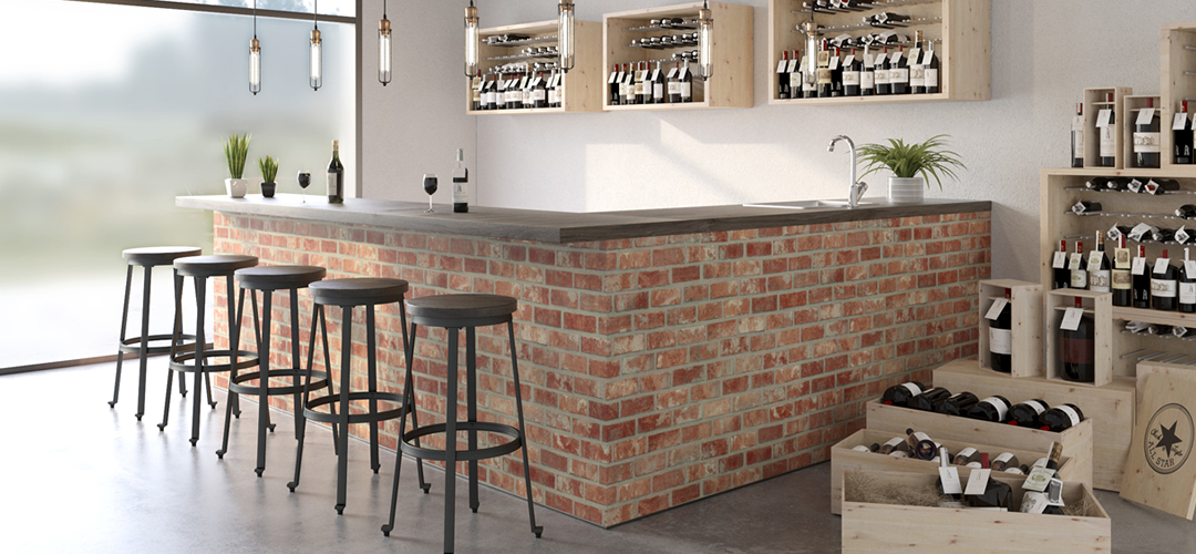 The Red Bricks model has a design that incorporates the classic bricks of natural color with contrasting cement arranged in a staggered way so as to create the optical sensation of a real wall.