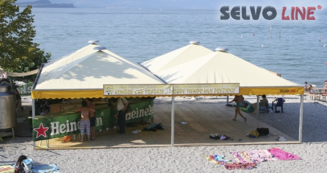 Primavera gazebos can be linked together (each one is supplied with its own tarpaulin) to form a single structure. Also in this case, assembly is made by using light and sturdy components.