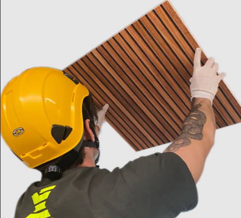 Our faux wood ceiling tiles can transform your room and make it cosier without cutting down a single tree!
