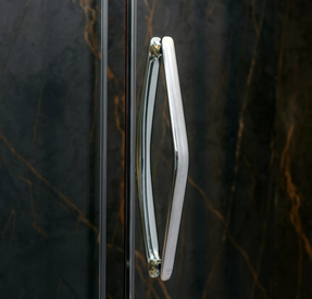 The ORO hinge & inline door features a uniquely crafted handle that is distinctly individual. Made from solid chrome plating, the handle is a joy to touch.