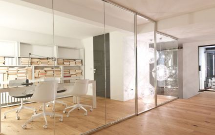 All Ways is a continuous system partition wall solution that can be used to define architectural spaces with transparent surfaces, including those that are large in size, without visual barriers.