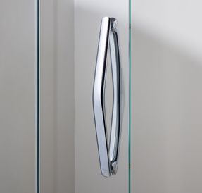 A uniquely crafted solid chrome handle, curved hinge detailing, countersunk interior hinges and and ultra-clear magnetic seals.