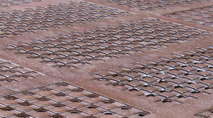 Our Explora pattern features a modular, industrial design motif that lends itself well to unique applications, such as grated walkways, large tree grate arrays and more.