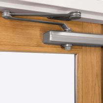 Optional commercial hardware package includes closer, mortise lock or rim device, kick plate, and removable mullions.