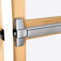 Commercial grade ball bearing hinges carry the substantial commercial door panels available up to 10 feet in height. The door is standard with no operating hardware for final prep and hardware installation in the field. Choose Optional Operating hardware from Marvin, including rim device, mortise lock, closer, kick plates, and removable mullions. Select from numerous hardware prep options if hardware will be supplied by others.