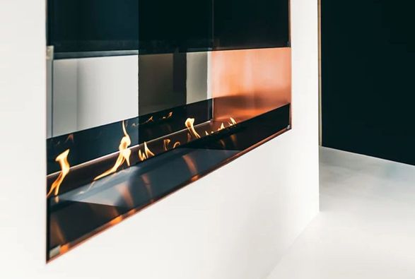This fireplace is available in several beautiful finishes including classic black, refined copper and luxurious brass, allowing you to choose the one that best suits your decor. The fireplace is designed to create a beautiful division between rooms, so it's ideal for separating kitchen and living room or even bathroom and bedroom. It adds not only a heat source and experience, but also value to your home.