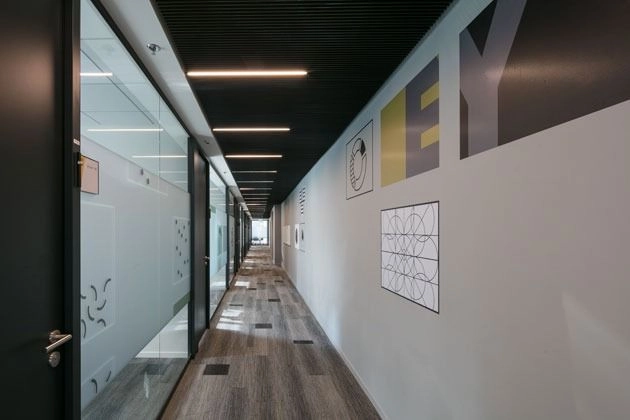 Deltaline is a linear solution for the Delta aluminum ceiling system. It consists of a U-shaped profile and modulated panels of 1200 x 600 mm, which can be completely dismantled downwards.