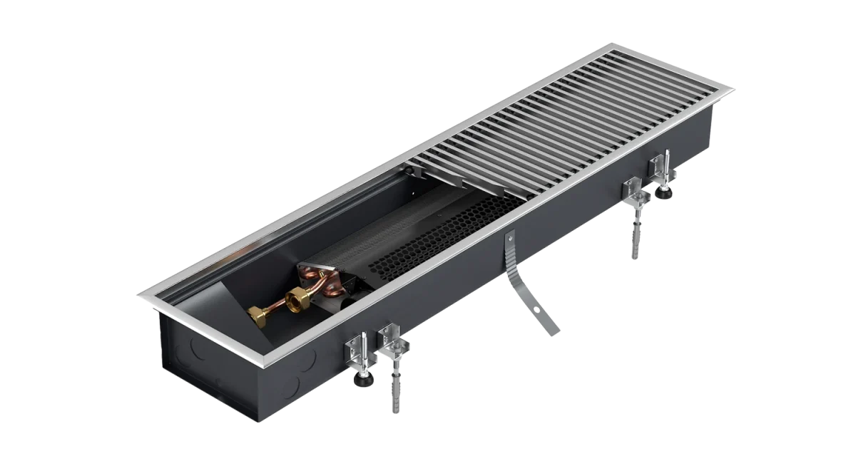 Thanks to the construction of VKN5P trench heaters, which are part of the freshAIR+ system, treated air is supplied to room from a ventilation unit in which it is subjected to preliminary filtration.