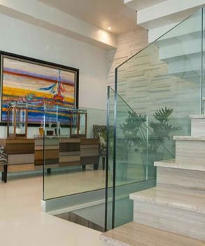 The glass railings are security and decorative systems that provide protection to our home, enhancing aesthetics and design.