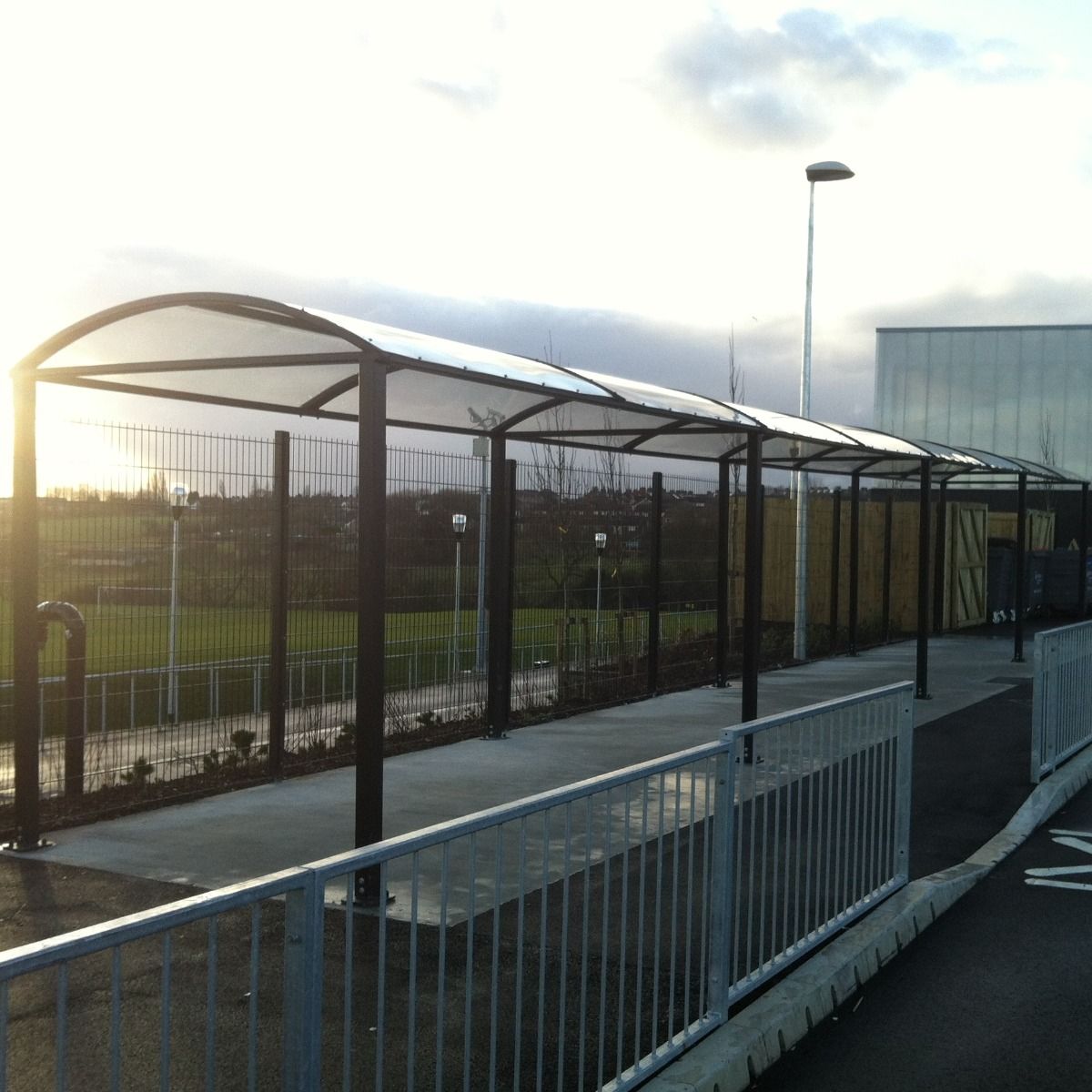 A low-maintenance and durable design to create connected walkways for protecting customers, employees, or pupils from the weather.