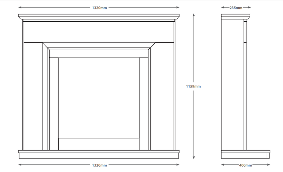 1320mm (52”) Complete gas fireplace available in White micro marble or White Micro Marble with Grey slip detailing, with Standard Lipped hearth.