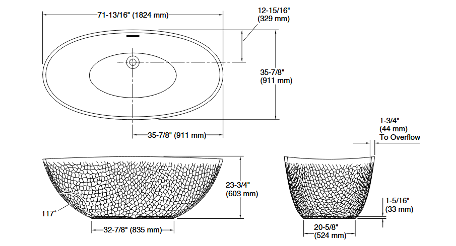-Honed white is a matte finish with the natural appeal of honed stone -Matte surface finish on the internal and external surfaces of the bath