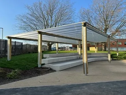 The Sheldon Canopy SCP312 is a large 7400 x 6491mm clear span monopitch canopy with a Non-Fragile polycarbonate roofing system protecting the interior from the elements.