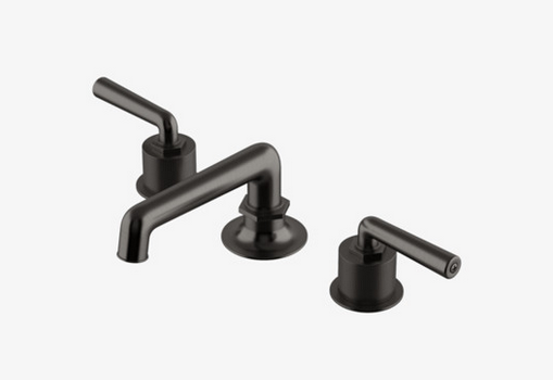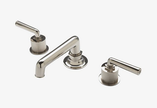 Henry Low Profile Three Hole Deck Mounted Lavatory Faucet with Coin Edge Cylinders and Metal Lever Handles
