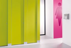 Our high pressure laminate (HPL) washroom cubicles and panelling are the affordable solution for more heavily used areas. Heat, scratch, impact and cigarette burn resistant, our high pressure laminate toilet cubicles are available in 34 different laminate colours. Manufactured from moisture-resistant chipboard faced with high pressure laminate; panels are 19mm nominal thickness with edges lipped with ABS. Across our entire range of HPL toilet cubicles and panelling, you will find the quality is uppermost. Our HPL washroom cubicles are installed in schools, offices, shopping malls, universities, or wherever there is a need for a hardwearing, robust toilet and washroom solution. Venesta’s high pressure laminate washroom cubicles and panelling are durable, sturdy and impact resistant.