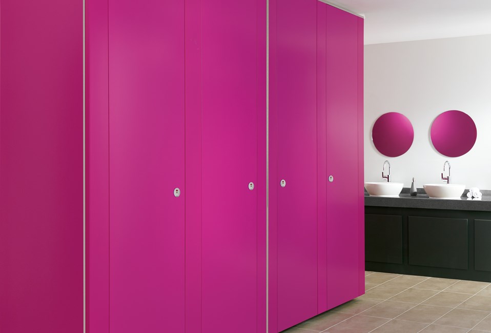 Our high pressure laminate (HPL) washroom cubicles and panelling are the affordable solution for more heavily used areas. Heat, scratch, impact and cigarette burn resistant, our high pressure laminate toilet cubicles are available in 34 different laminate colours. Manufactured from moisture-resistant chipboard faced with high pressure laminate; panels are 19mm nominal thickness with edges lipped with ABS. Across our entire range of HPL toilet cubicles and panelling, you will find the quality is uppermost. Our HPL washroom cubicles are installed in schools, offices, shopping malls, universities, or wherever there is a need for a hardwearing, robust toilet and washroom solution. Venesta’s high pressure laminate washroom cubicles and panelling are durable, sturdy and impact resistant.