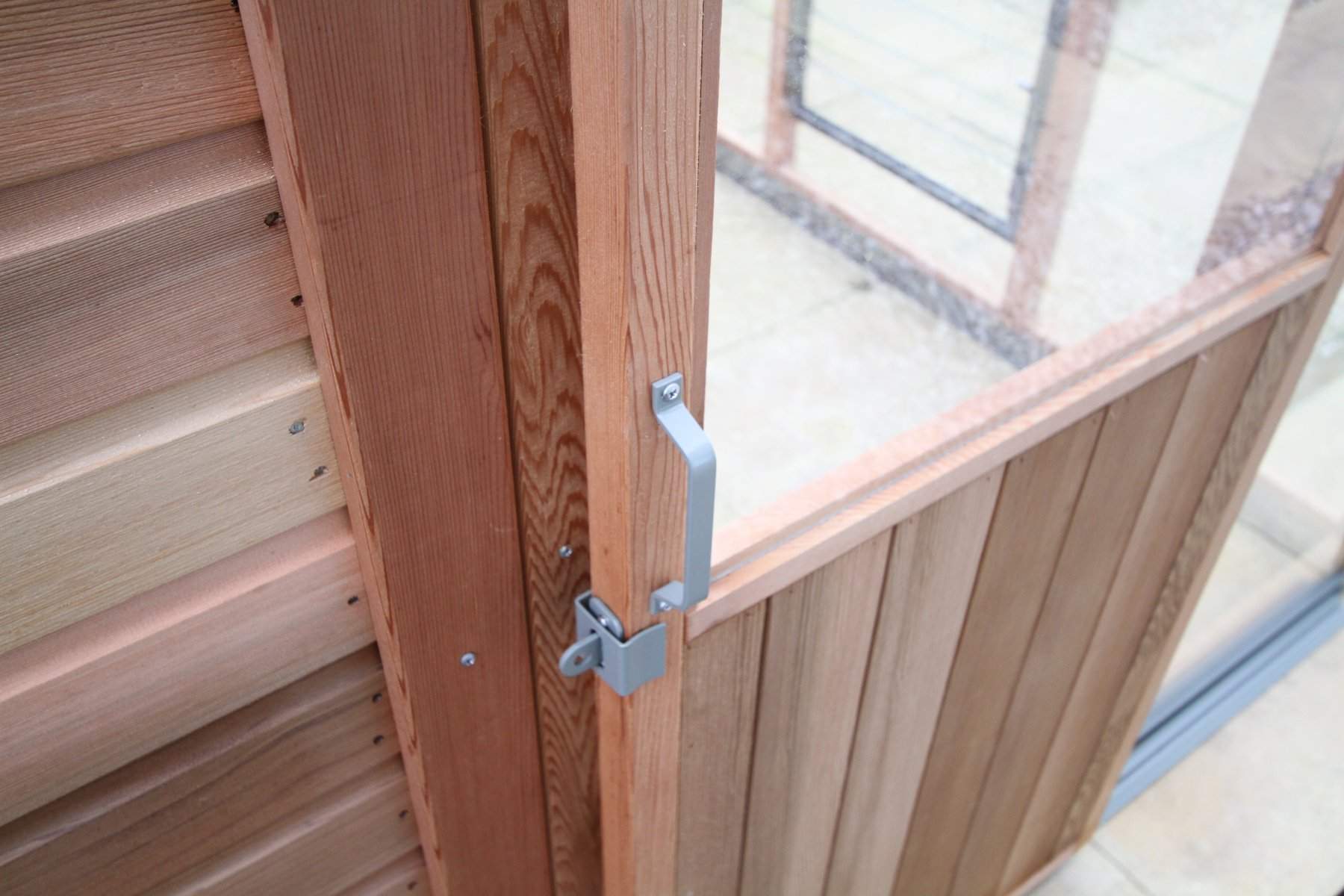 The workshop makes an ideal working space, with plenty of light from the large window on the external wall, and high level windows on the internal wall to the greenhouse. It has incredible strength, due to the solid nature of the timber carcassing, and the tongue and groove cladding is made of the same treated Western Red Cedar as the greenhouse. The roof is covered with a quality red felt, making the building watertight. There is an optional timber bench available, for the perfect workstation.